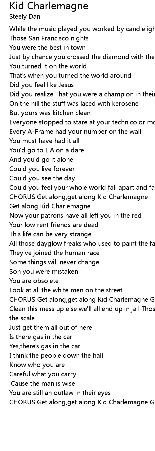CHORUS Get along,get along Kid Charlemagne Get along Kid Charlemagne |