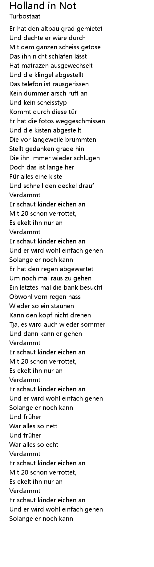 | Mit 20 schon verrottet, | |