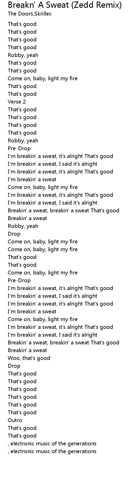 | Breakin' a sweat, breakin' a sweat That's good | |