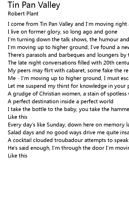 I come from Tin Pan Valley and I'm moving right along |