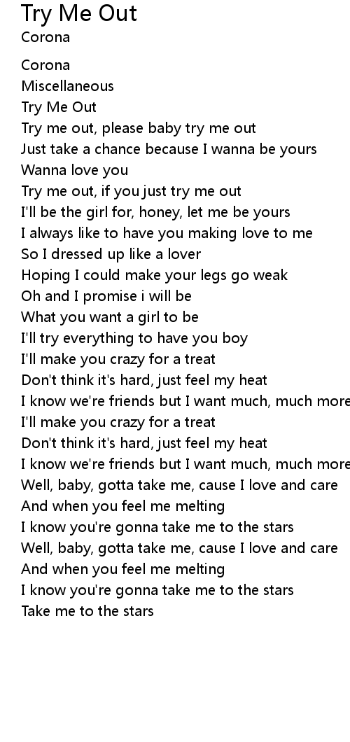 Try me out, please baby try me out |