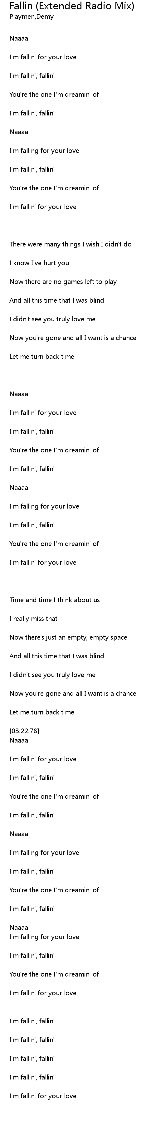 | [03:49:78] | I'm fallin', fallin' |