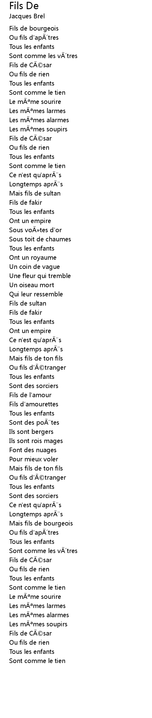| Song | Fils De |