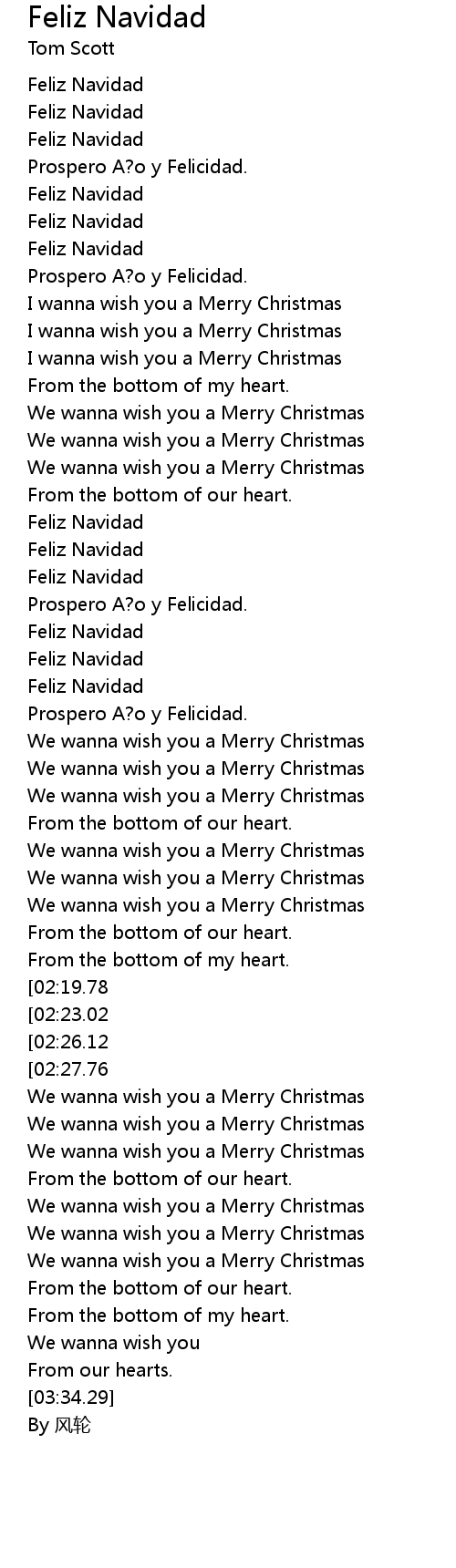| [02:36.56][02:23.02] | Feliz Navidad |