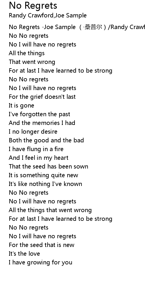 | [00:00.00] | No Regrets Joe Sample sang pu er Randy Crawford |