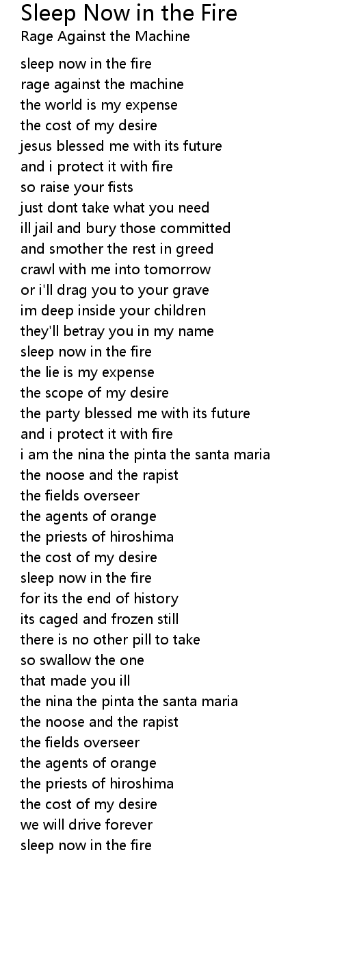 sleep now in the fire |