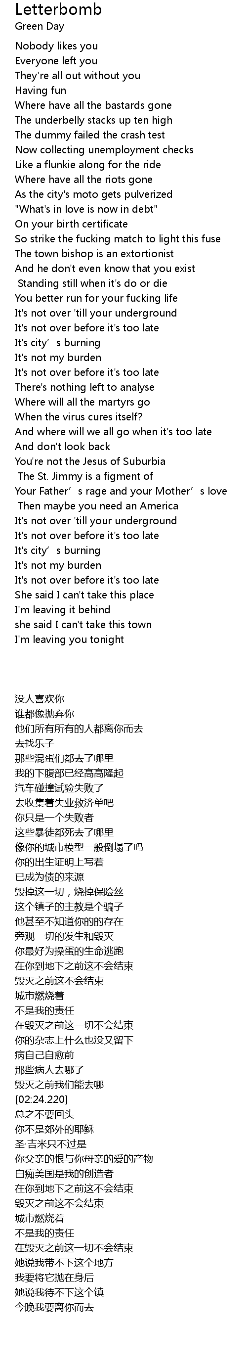 | [01:21.640] | So strike the fucking match to light this fuse |
