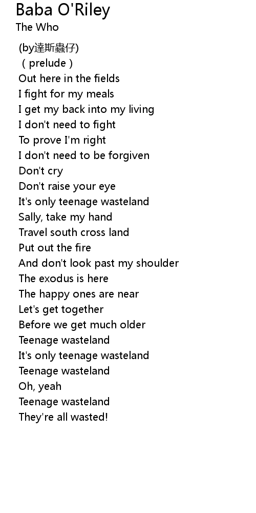 | It' s only teenage wasteland | |