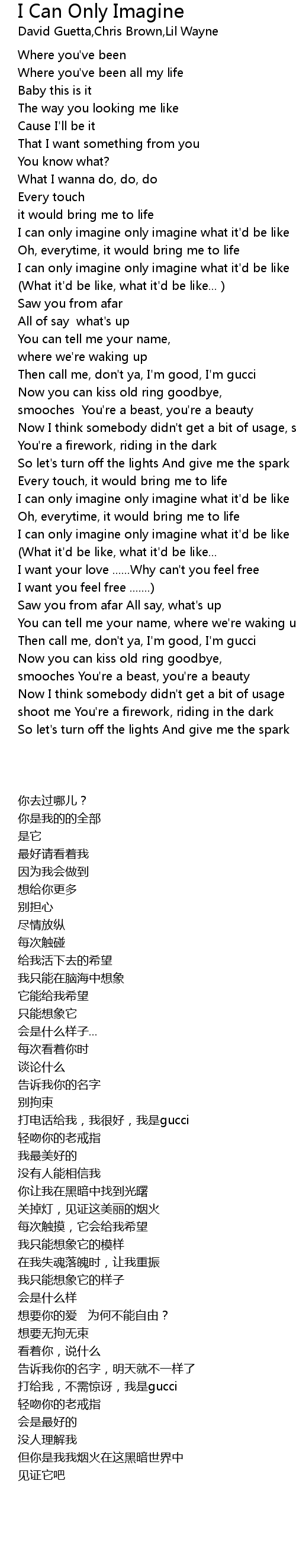 I can only imagine only imagine what it'd be like |