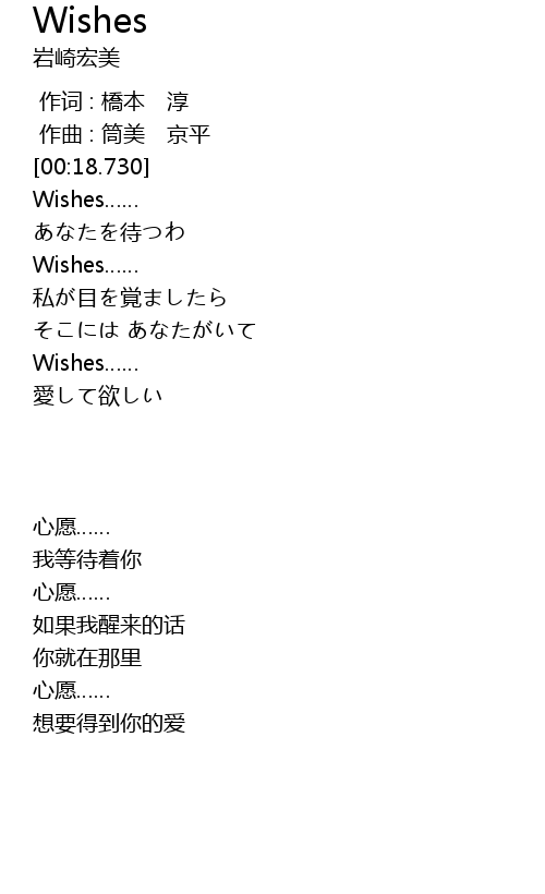 | [00:21.430] | Wishes…… |