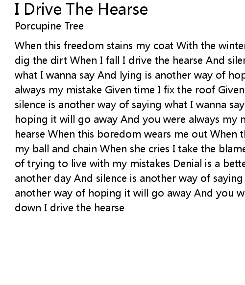 When this freedom stains my coat With the winter in my throat When I'm lost I dig the dirt When I fall I drive the hearse And silence is another way of saying what I wanna say And lying is another way of hoping it will go away And you were always my mistake Given time I fix the roof Given cash I speak the truth And silence is another way of saying what I wanna say And lying is another way of hoping it will go away And you were always my mistake When I'm down I drive the hearse When this boredom wears me out When the sky begins to cloud Sleeping with my ball and chain When she cries I take the blame And pride is just another way of trying to live with my mistakes Denial is a better way of getting through another day And silence is another way of saying what I wanna say And lying is another way of hoping it will go away And you were always my mistake When I'm down I drive the hearse |