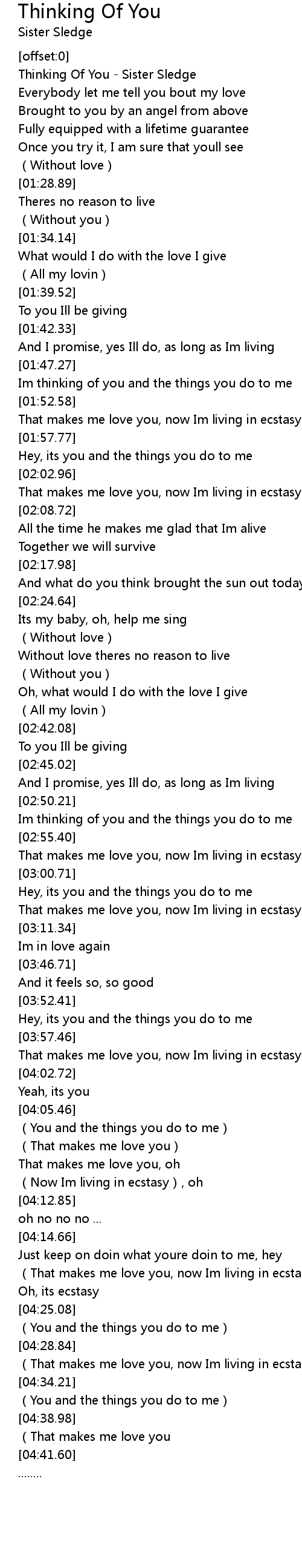 | [00:00.65] | Thinking Of You - Sister Sledge |