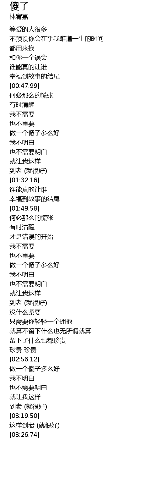 | [03:01.93] | 做一个傻子多么好 |