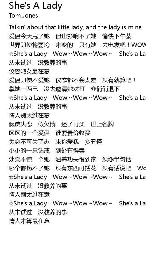 | [00:51.93] | She' s a Lady Wow Wow Wow She' s a Lady |