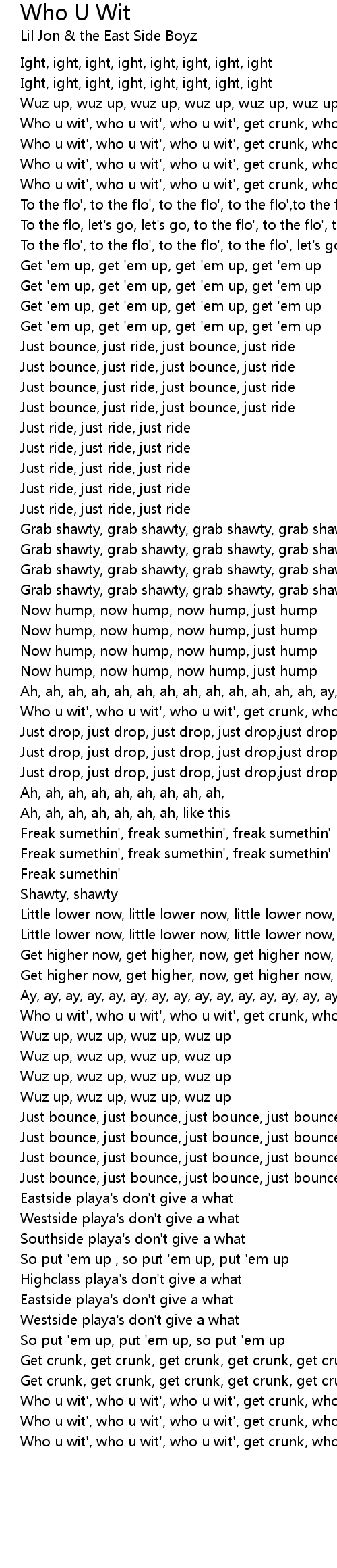 Who u wit', who u wit', who u wit', get crunk, who u wit |