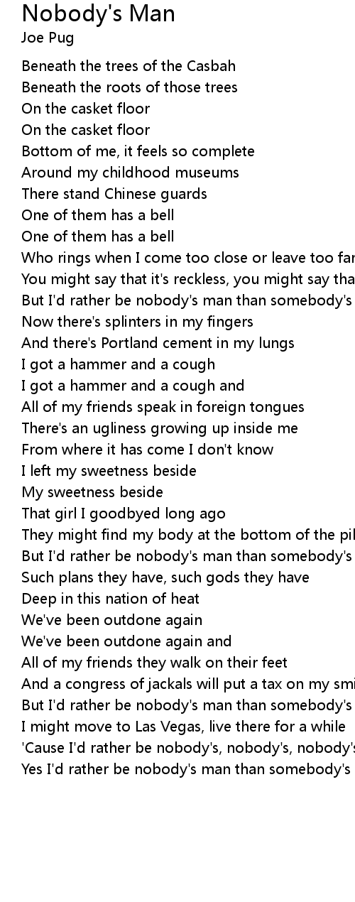 'Cause I'd rather be nobody's, nobody's, nobody's
