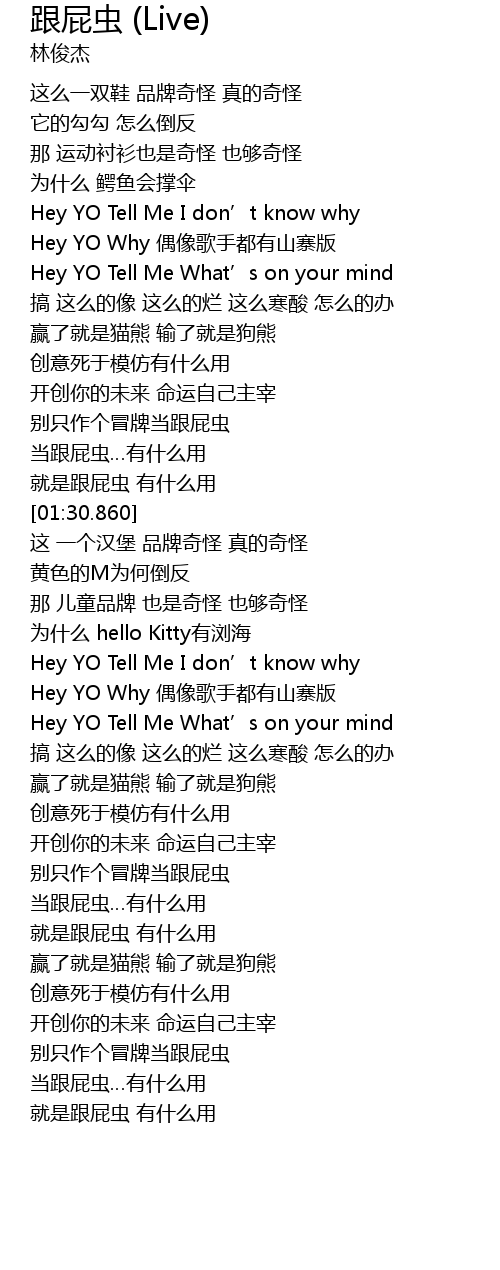 | [01:58.360] | Hey YO Why 偶像歌手都有山寨版 |