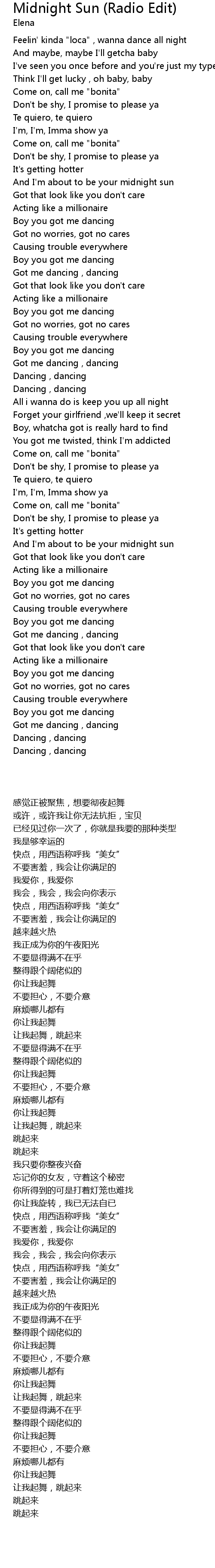 Midnight Sun (Radio Edit) Lyrics