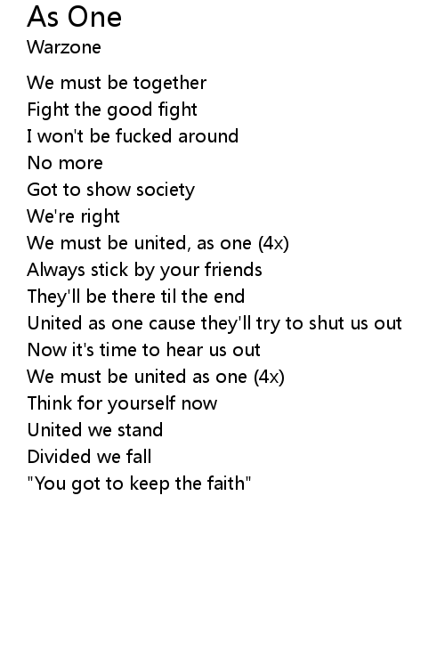 | We must be united, as one (4x) | |