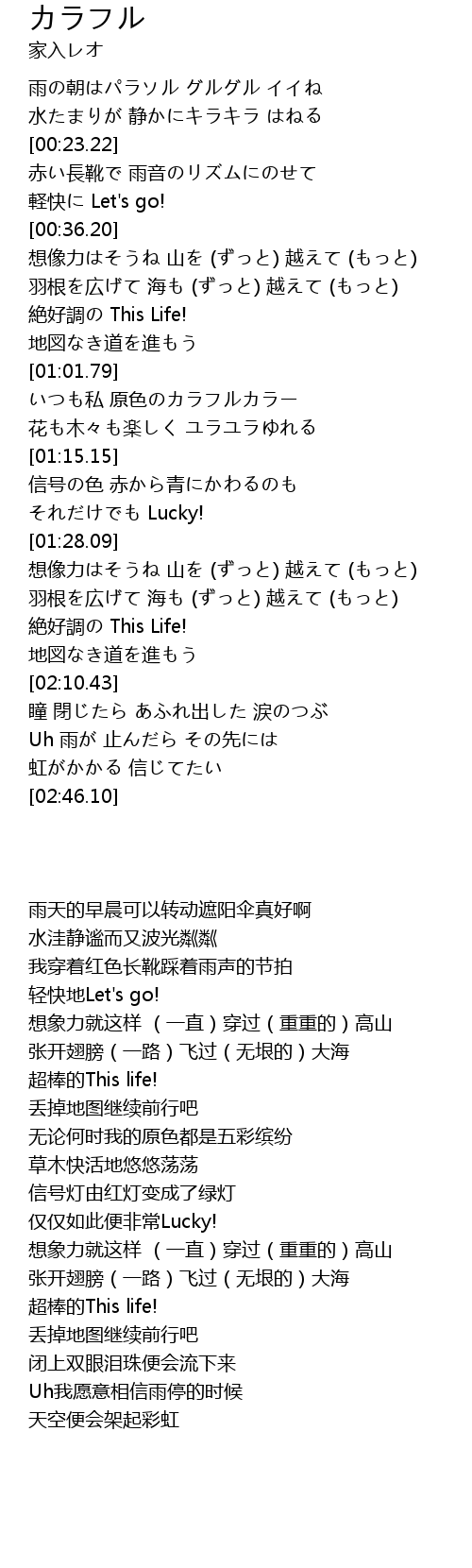 | [01:02.35] | いつも私 原色のカラフルカラー |