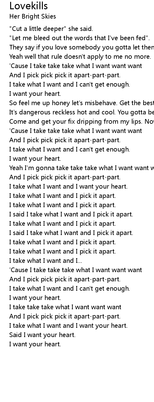 I take take take what I want want want |