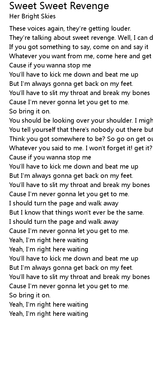 They're talking about sweet revenge. Well, I can do better, yeah |