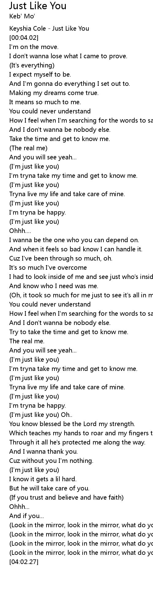 (I'm just like you) Oh.. |