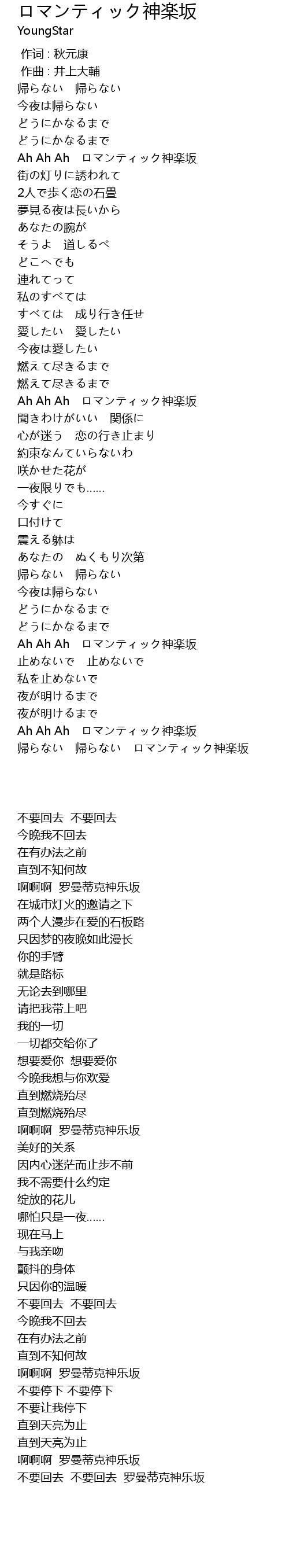 | [03:23.190] | 帰らない 帰らない ロマンティック神楽坂 |