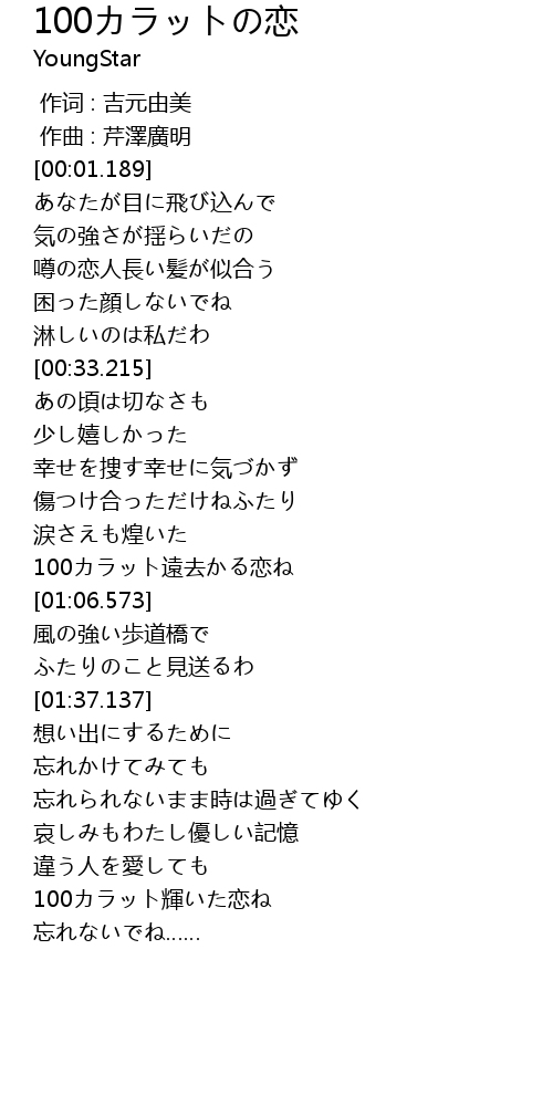 | [00:59.259] | 100カラット遠去かる恋ね |
