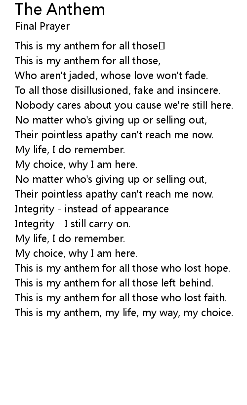 | This is my anthem for all those, | |