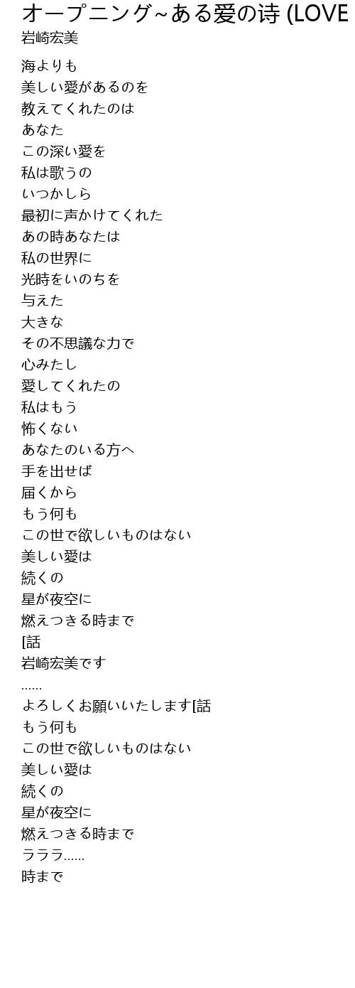 | Song | オープニング~ある爱の诗 (LOVE STORY) |