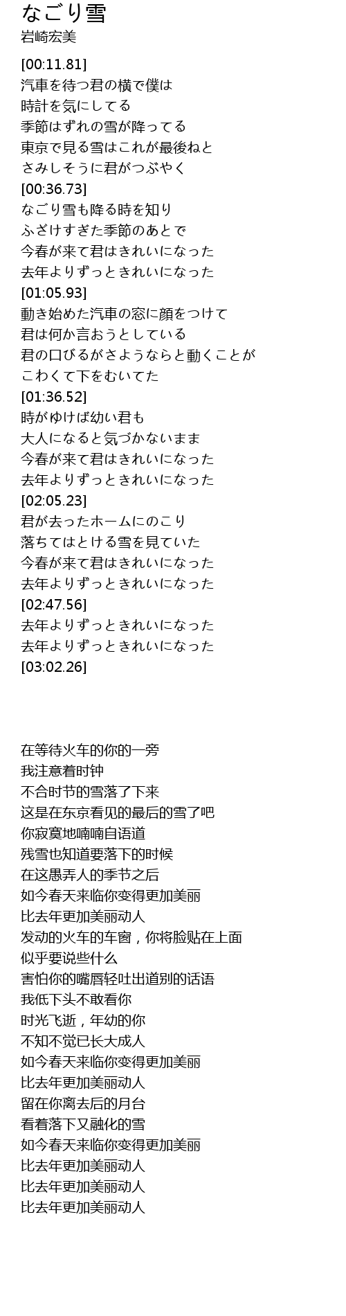 | [02:27.04] | 落ちてはとける雪を見ていた |