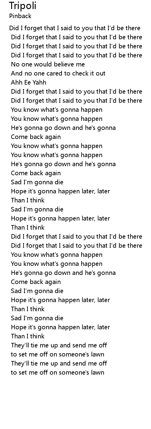 | Did I forget that I said to you that I'd be there | |