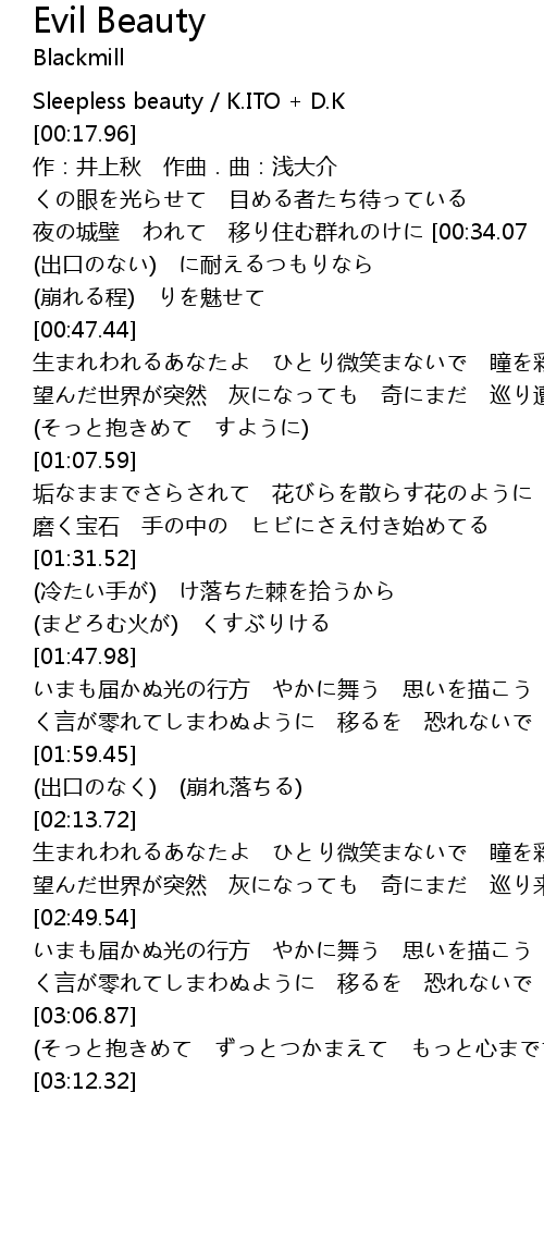| [00:15.00] | Sleepless beauty / K.ITO + D.K |