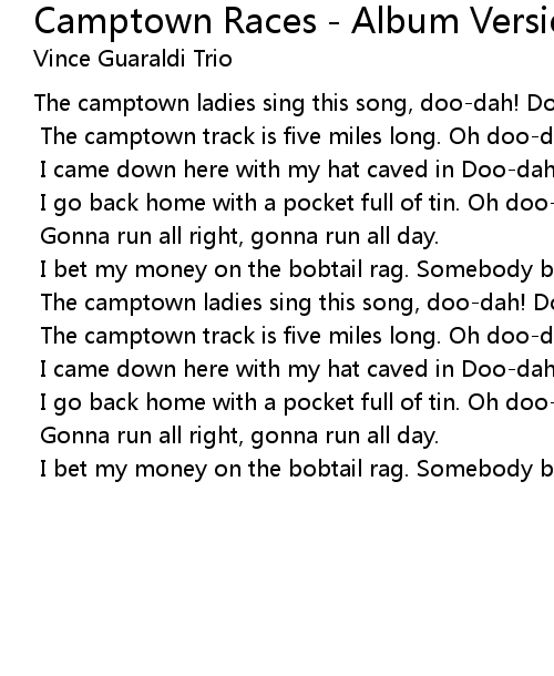 The camptown track is five miles long. Oh doo-dah-day! |