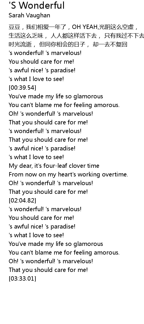 | [01:09.57] | ' s wonderful! ' s marvelous! |