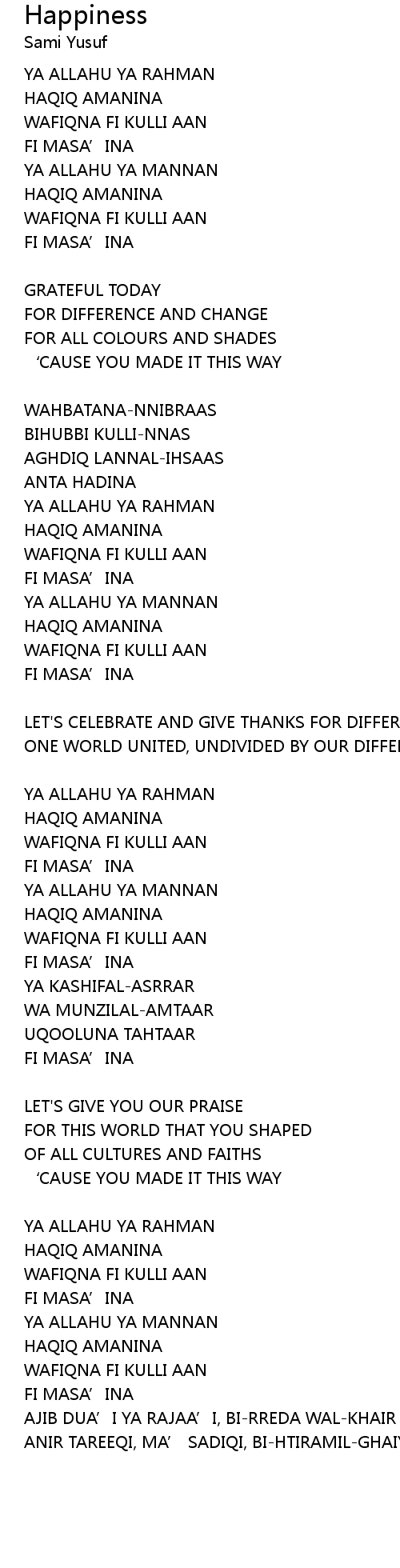 | YA ALLAHU YA RAHMAN | |