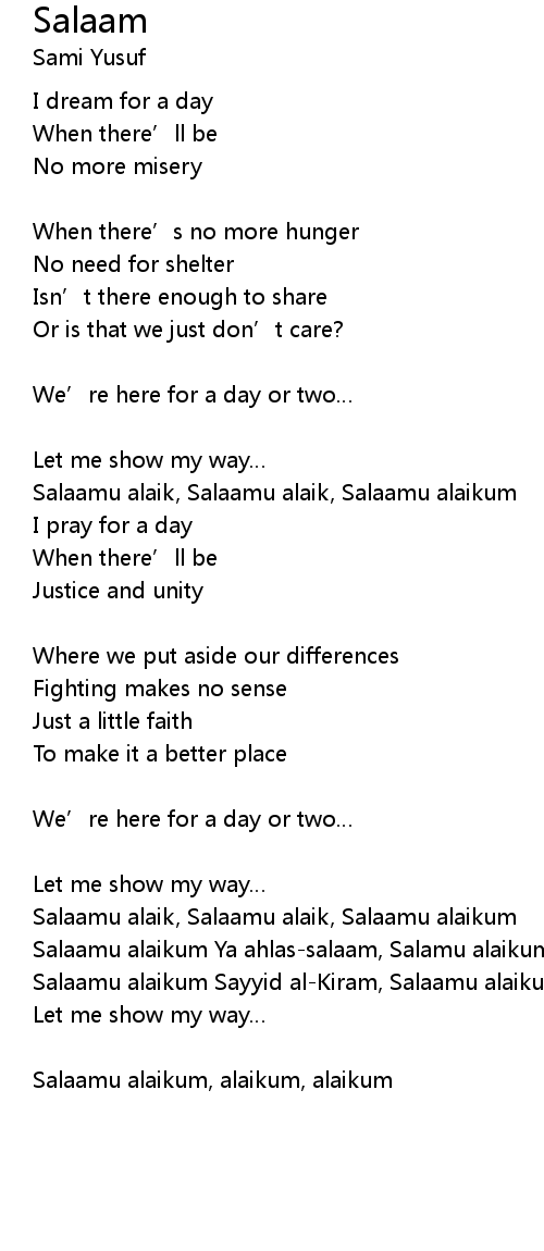 | Salaamu alaikum Ya ahlassalaam, Salamu alaikum | |