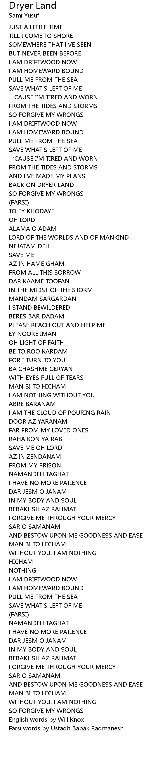 | Song | Dryer Land |