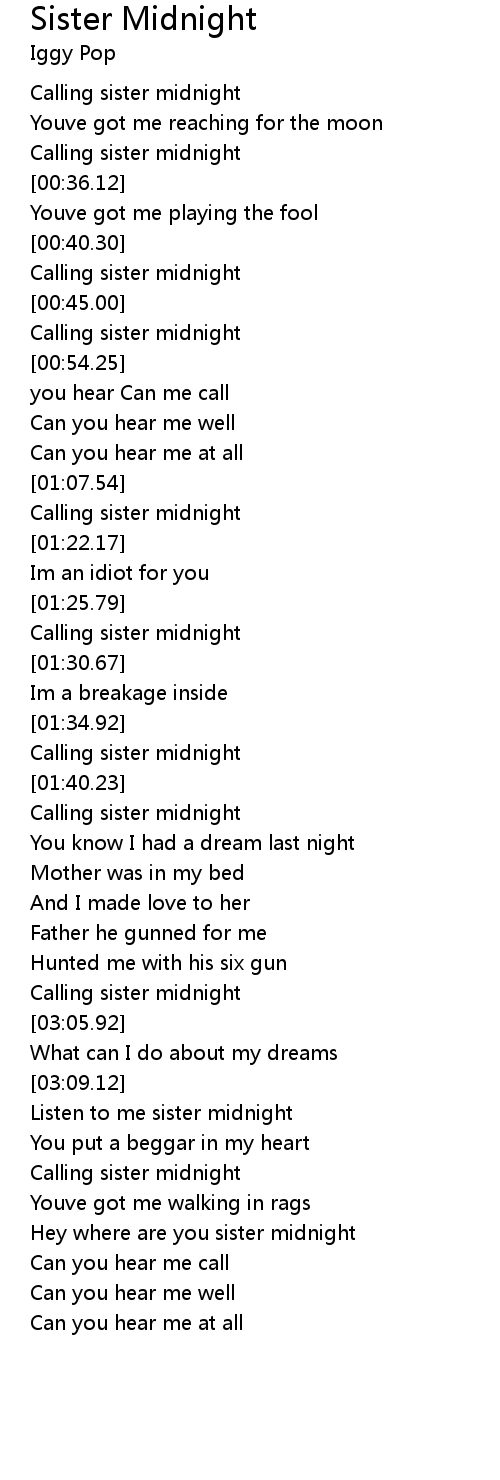 Listen to me sister midnight |