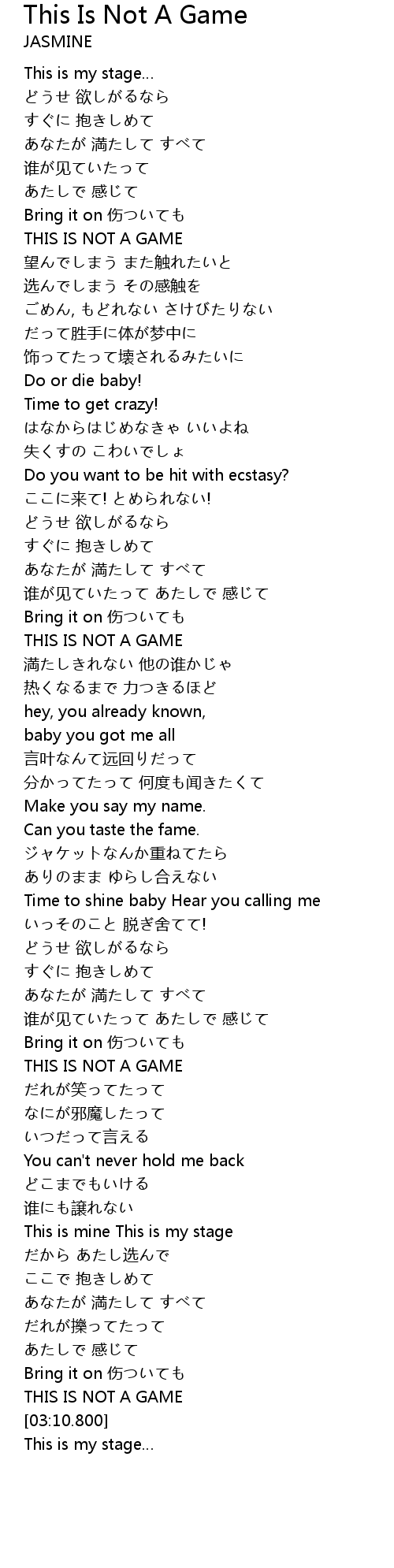| [03:09.470] | THIS IS NOT A GAME |