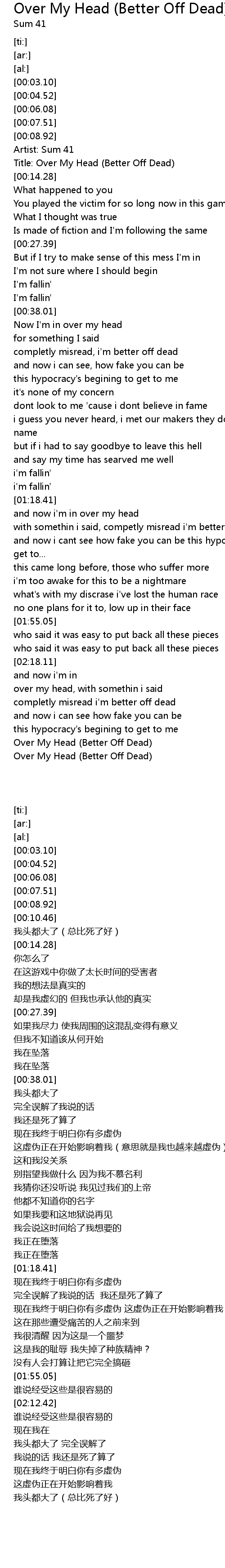 Title: Over My Head (Better Off Dead) |