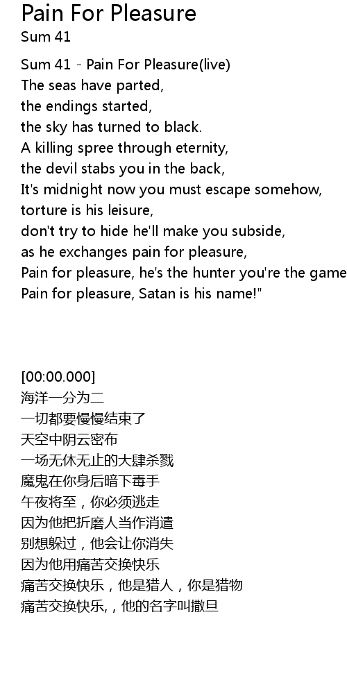 Pain for pleasure, Satan is his name!" |