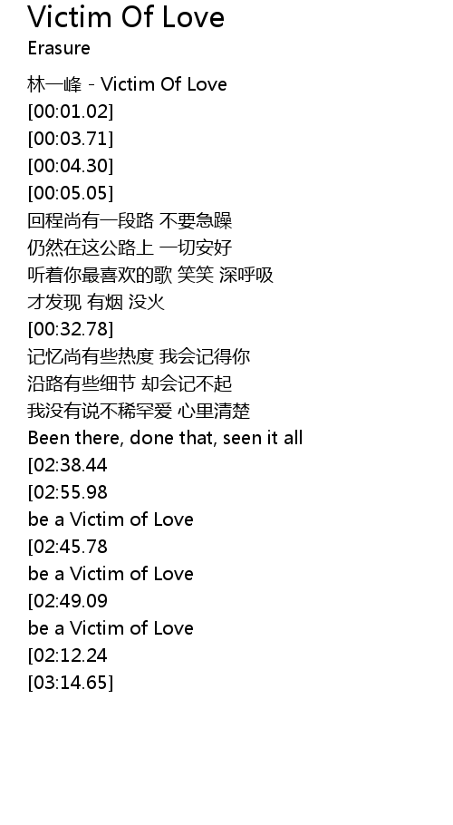 | [00:00.38] | lin yi feng Victim Of Love |