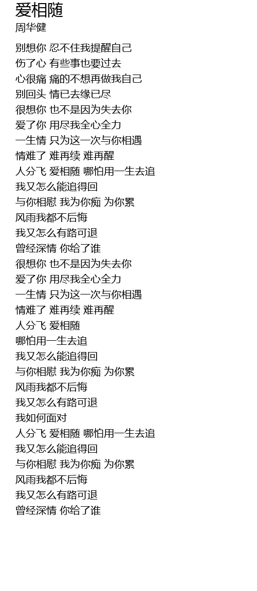 | [02:55.27] | 人分飞 爱相随 哪怕用一生去追 |