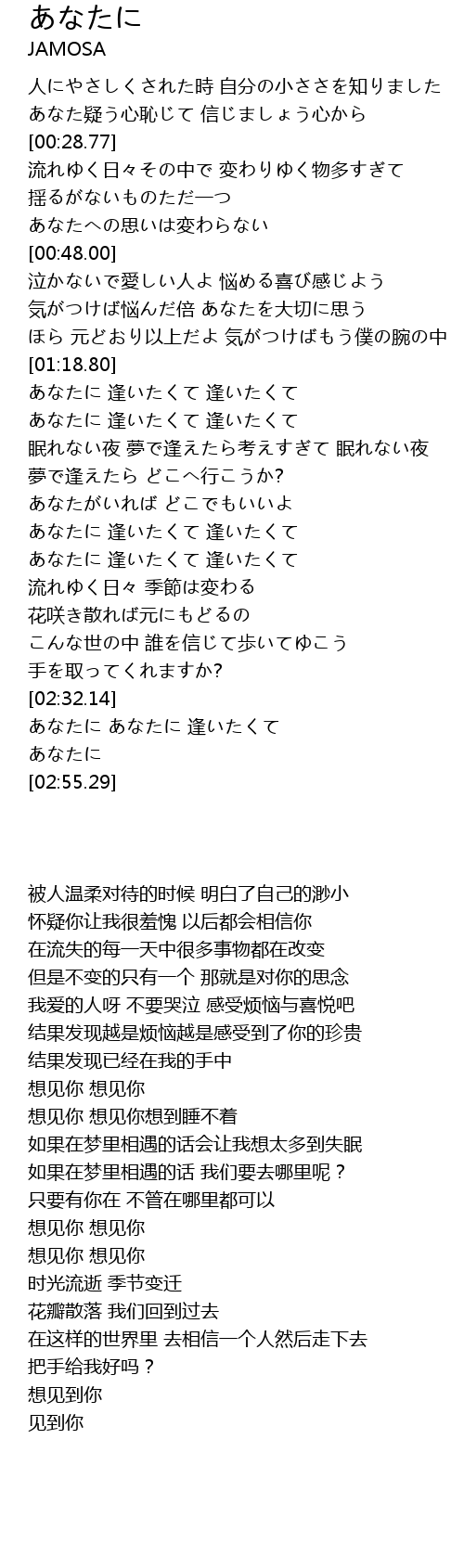 | [02:41.53] | あなたに あなたに 逢いたくて |