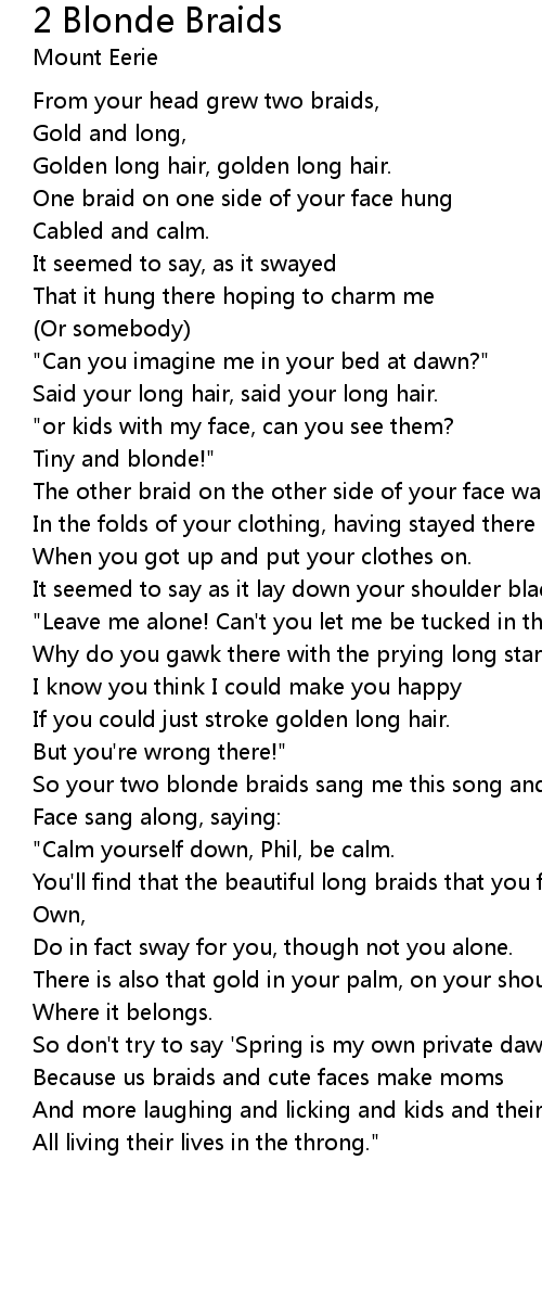 So your two blonde braids sang me this song and, in between them, your |