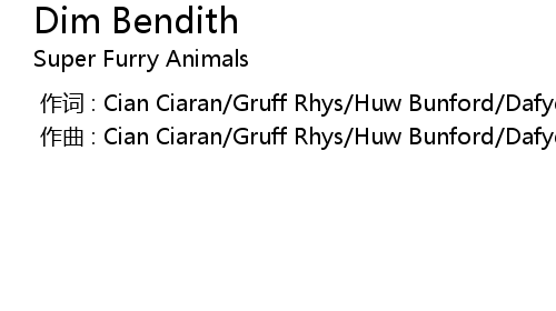 | [00:00.000] | 作词 : Cian Ciaran/Gruff Rhys/Huw Bunford/Dafydd Ieuan/Guto Pryce |