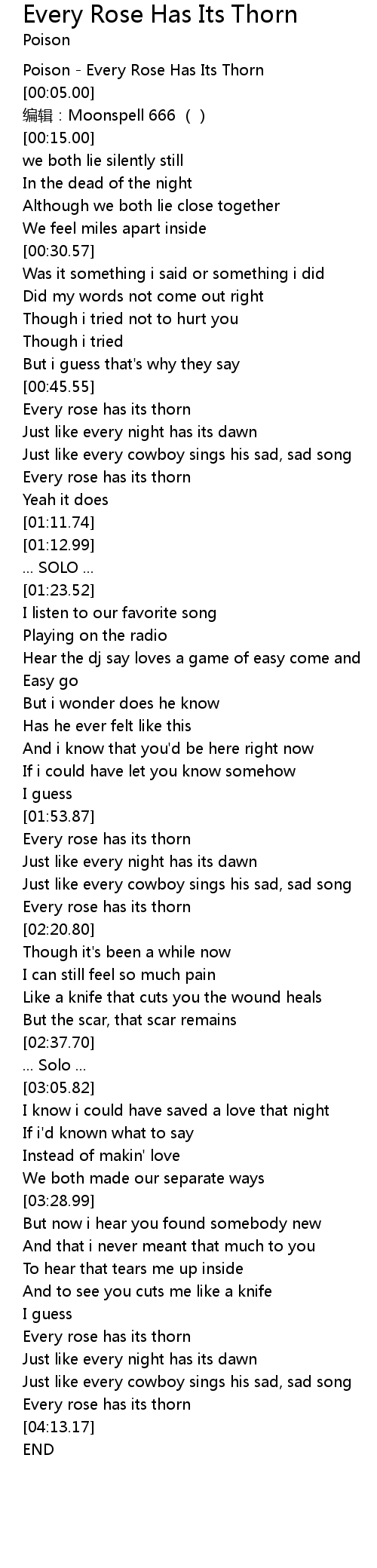 | [00:00.00] | Poison - Every Rose Has Its Thorn |