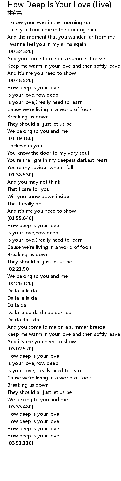 | [01:28.520] | You're the light in my deepest darkest heart |